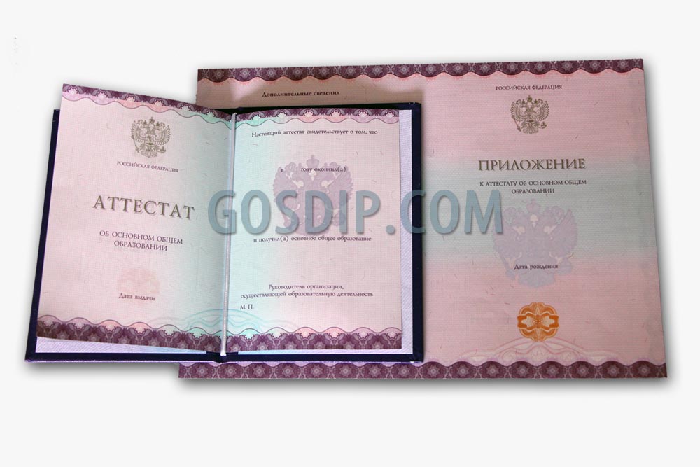 На нашем сайте Вы можете купить школьный аттестат об окончании 9 классов в 2014-2020 годах. В 2021 ушел из обращения, т.к. им на смену пришли аттестаты с QR-кодом. В комплект при покупке входит: твердая обложка фиолетового цвета с тиснением фольгой, заполненный бланк аттестата и приложение к нему. Делаем быстро, профессионально, сохраняем анонимность и безопасность.